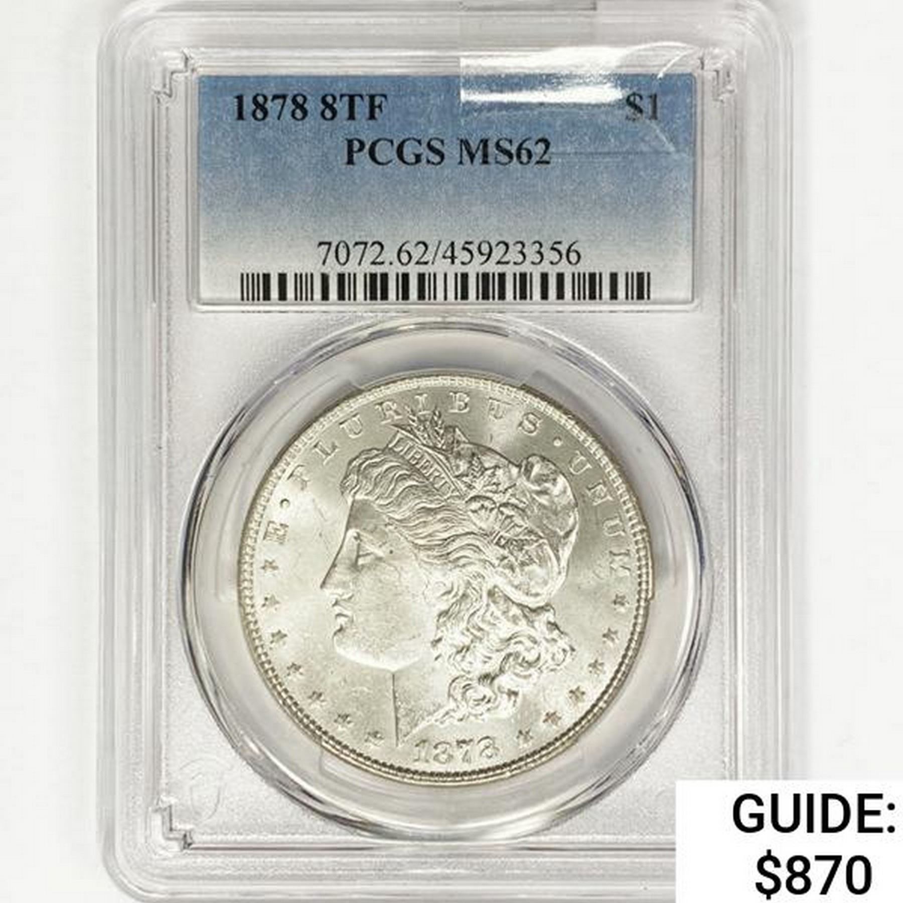 1878 8TF Morgan Silver Dollar PCGS MS62