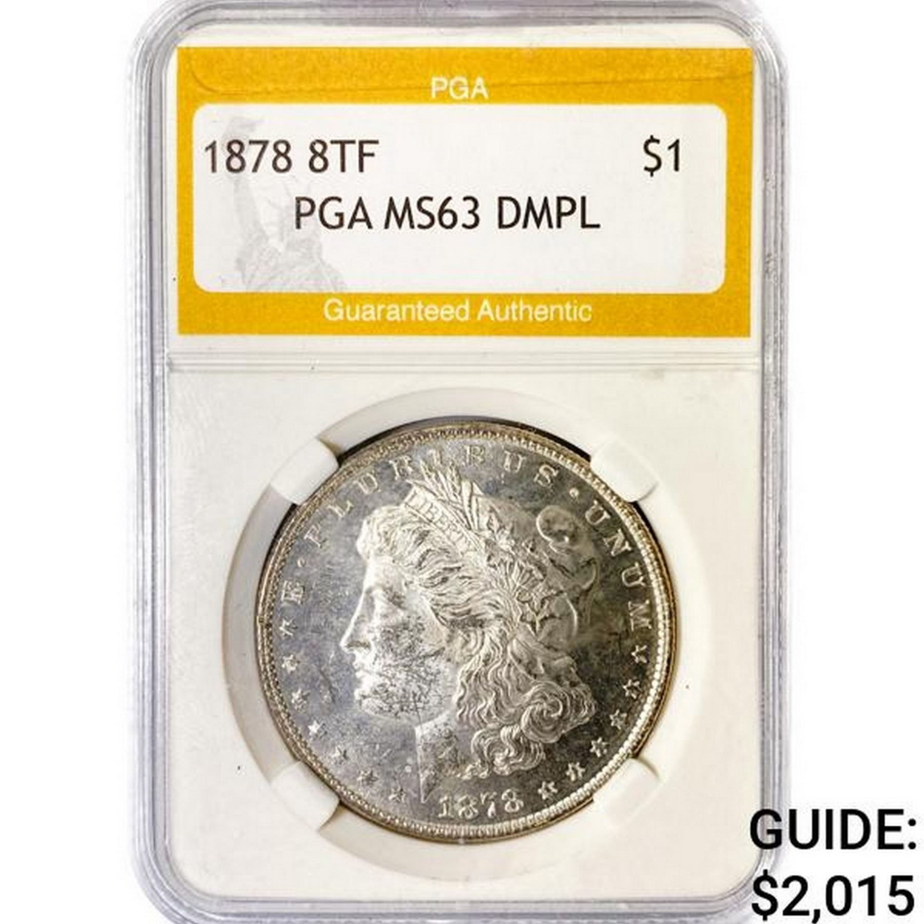 1878 8TF Morgan Silver Dollar PGA MS63 DMPL