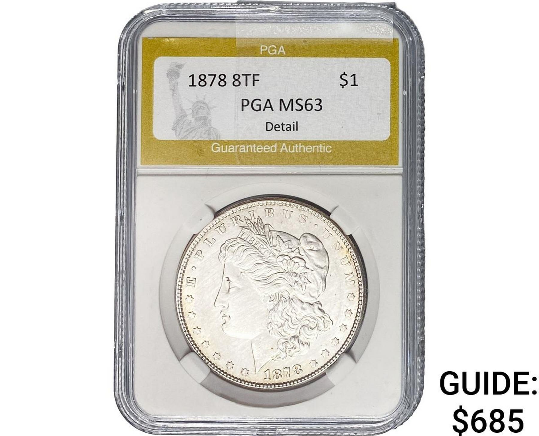 1878 8TF Morgan Silver Dollar PGA MS63 Detail