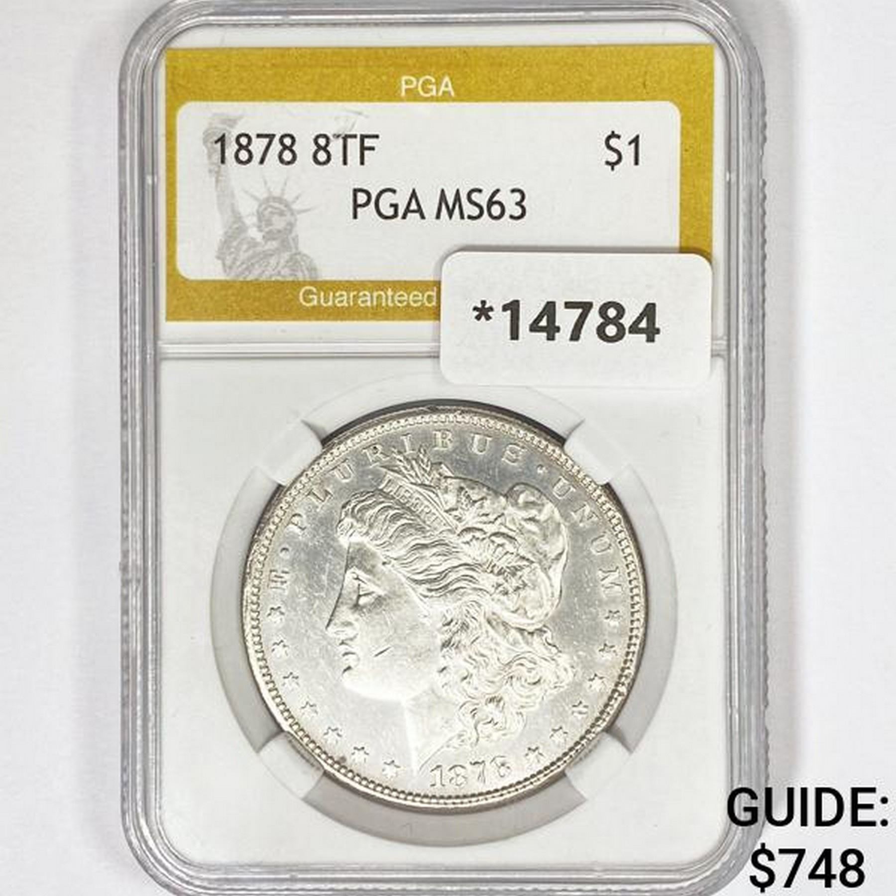 1878 8TF Morgan Silver Dollar PGA MS63