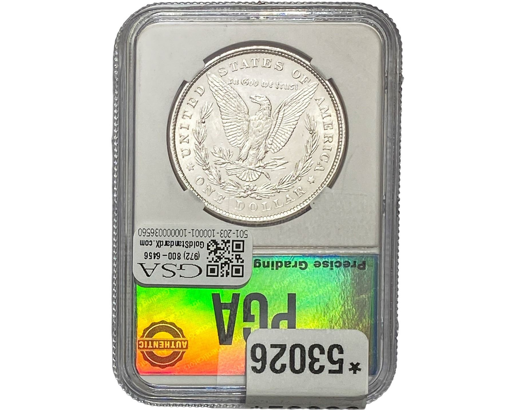 l. All non-certified coins and currency are guaranteed genuine, but are not guaranteed as to grade, since grading is a matter of opinion, an art and not a science, and therefore the description rendered by GSA or any third-party grading service may not agree with the opinion of others (including trained experts), and the same expert may not grade the same item with the same grade at two different times. GSA may, but is not obligated to, express an opinion as to non-certified numismatic items, in GSA’s opinion, or by its employees’ experience and the current interpretation of the American Numismatic Association’s standards as of the date the catalog was prepared. There is no guarantee or warranty expressed or implied that the grading opinions utilized by GSA, if any, will meet the standards of any grading service at any time in the future.