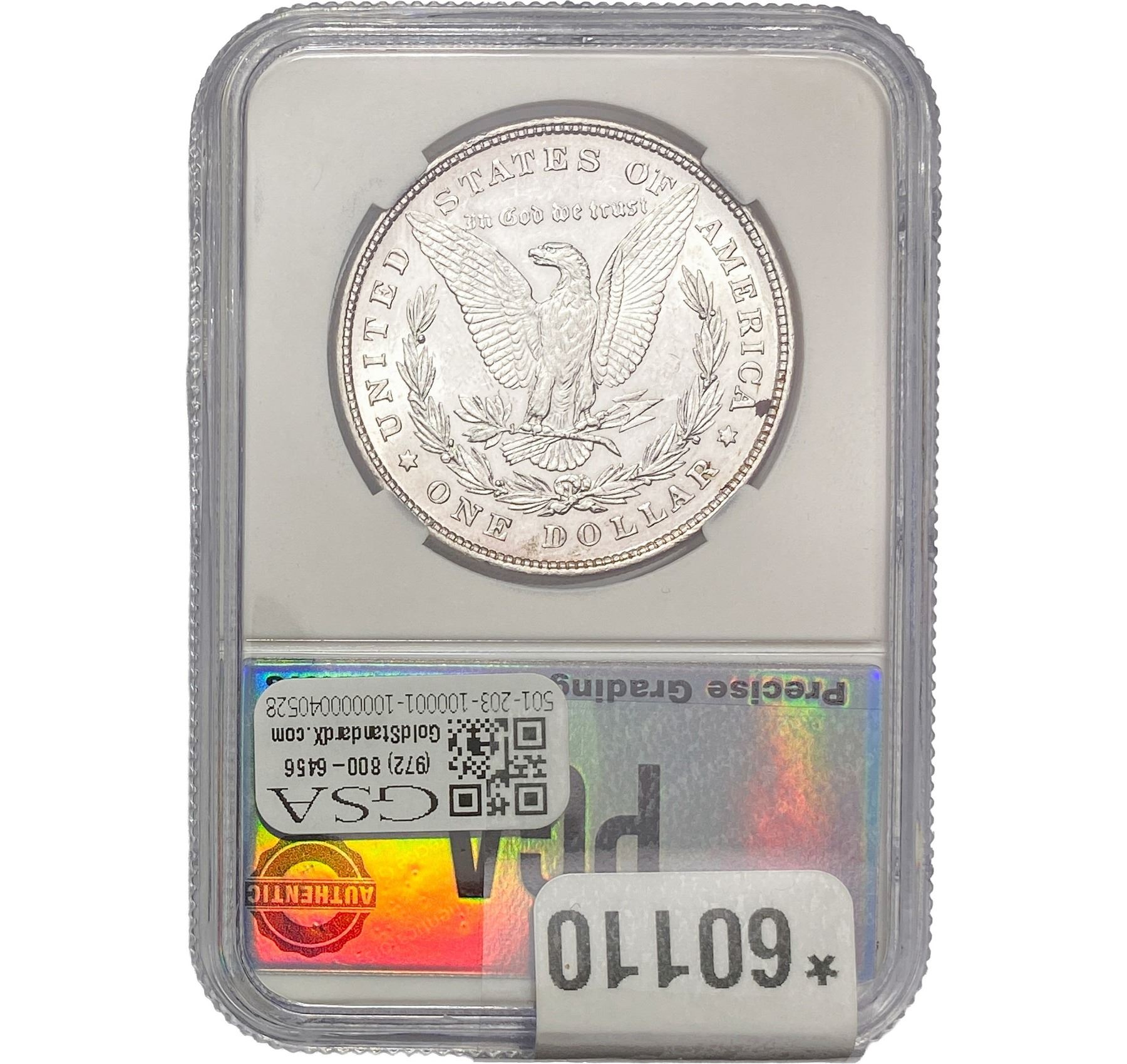 e. Coins sold referencing a third-party grading service are sold “AS IS” without any express or implied warranty, except for a guarantee by GSA that they are genuine. Removal or alteration of the holder, voids all of Bidder’s claims concerning that Product. Certain warranties may be available from the grading services and Bidders are referred to them for further details: Numismatic Guaranty Corporation (NGC), PO Box 4776, Sarasota, FL 34230, www.ngccoin.com/services/writtenguarantee.asp; Professional Coin Grading Services (PCGS), PO Box 9458, Newport Beach, CA 92658, www.pcgs.com/guarantee.html; ANACS, 6555 S. Kenton St., Ste. 303, Englewood, CO 80111; and Independent Coin Grading Co. (ICG), 7901 East Bellview, Ave., Suite 50, Englewood, CO 80111.