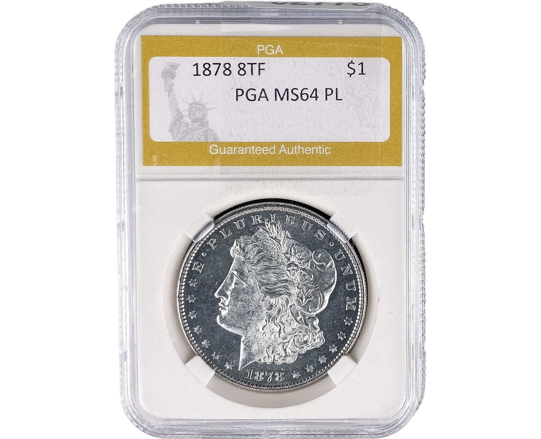 1878 8TF Morgan Silver Dollar PGA MS64 PL