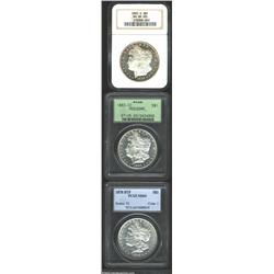 1878 8TF S$1 MS63 PCGS, brilliant and fully struck; 1883-CC MS63 Deep Mirror Prooflike PCGS, lightly