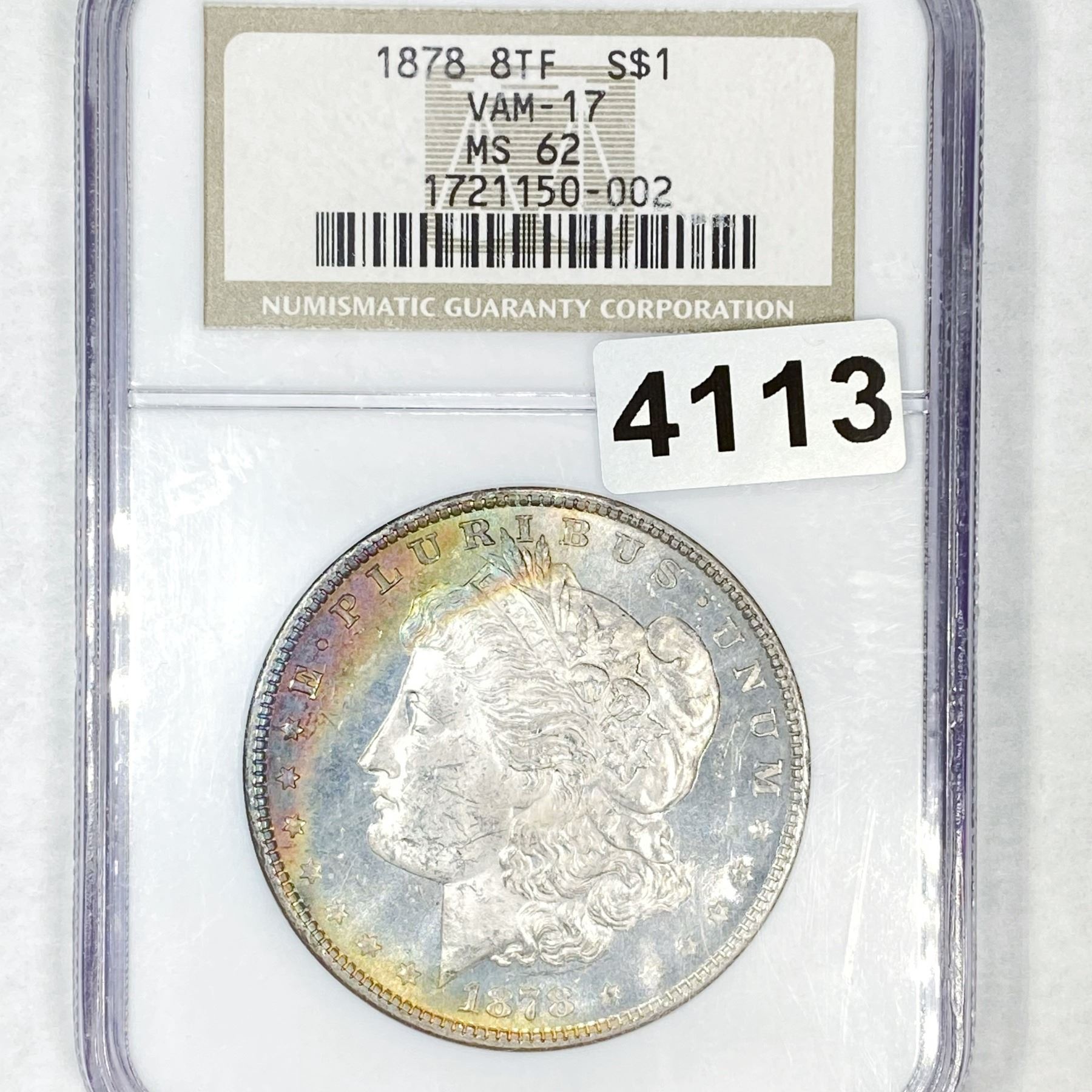 1878 8TF VAM17 Morgan Silver Dollar NGC - MS62