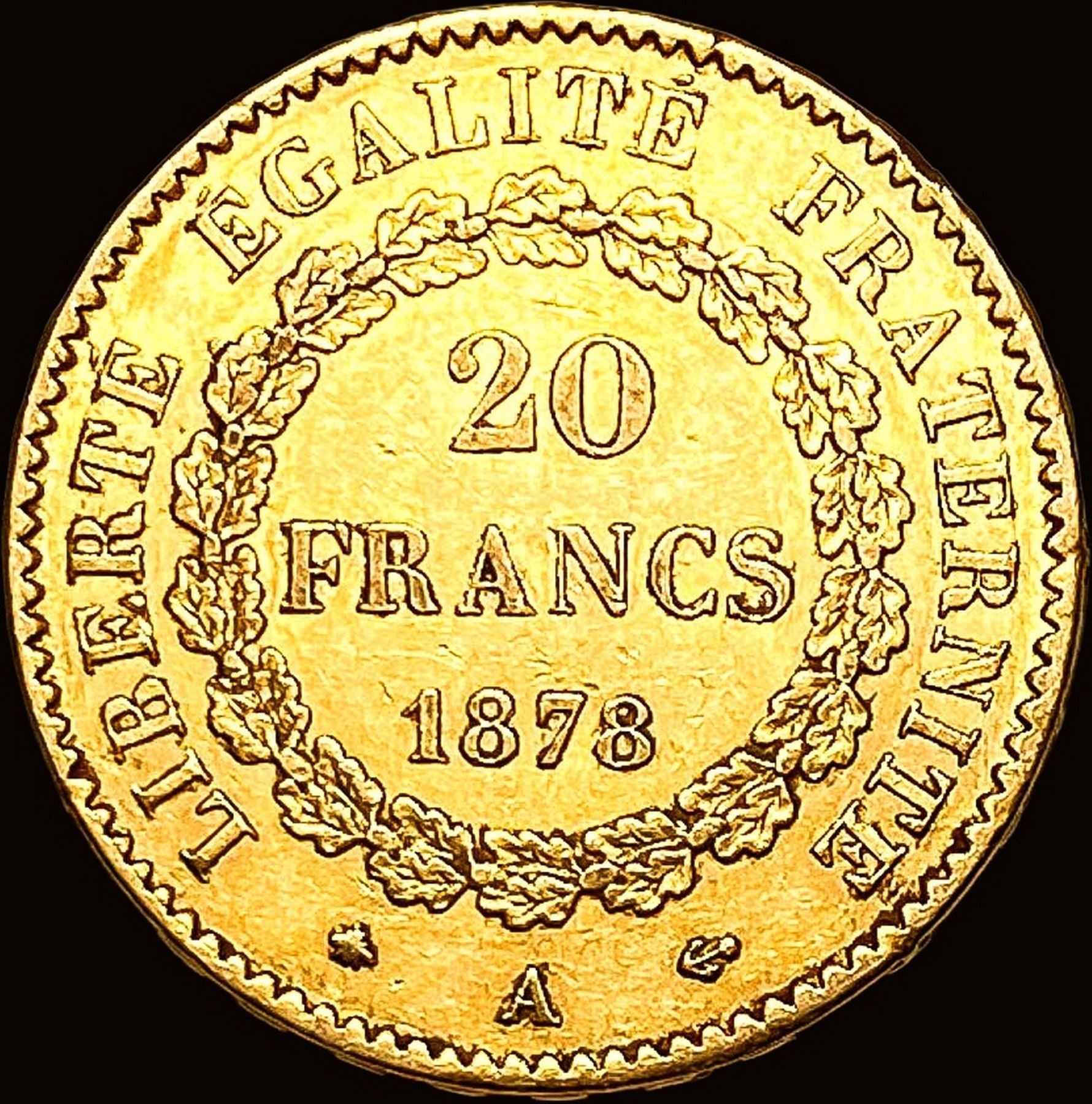 1878-A France Gold 20 Francs .1867oz UNCIRCULATED