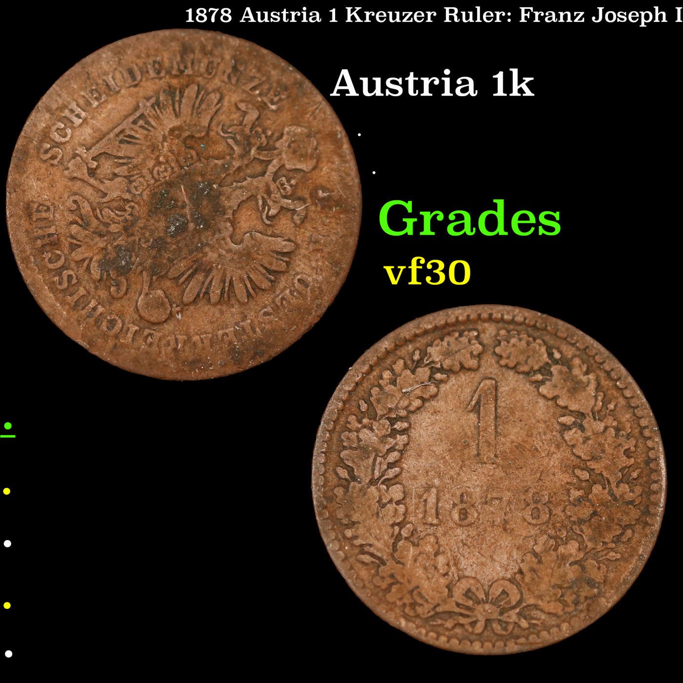 1878 Austria 1 Kreuzer Ruler: Franz Joseph I Grades vf++.