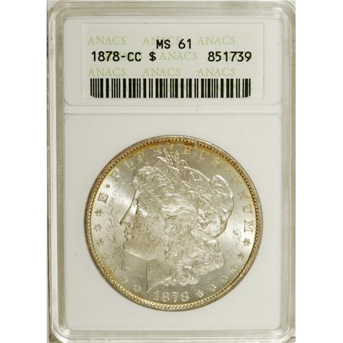 <B>1878-CC $1 MS61 ANACS.</B></I> NGC Census: (309/8938). PCGS Population (526/14325). Mintage: 2,212,000. Numismedia Wsl. Price: $183. (#7080)<BR><BR><b>Shipping:</b> Coins & Currency (<a target="_blank" href="http://www.heritageauctions.com/common/shipping.php">view shipping information</a>)