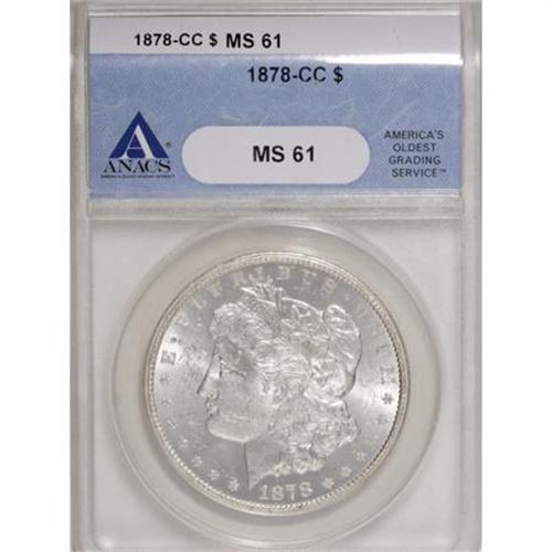 <B>1878-CC $1 MS61 ANACS.</B></I> NGC Census: (397/9901). PCGS Population (557/15266). Mintage: 2,212,000. Numismedia Wsl. Price for NGC/PCGS coin in MS61: $183. (#7080)<BR><BR><B>Coin Engraver:</B> George T. Morgan<BR><BR><b>Shipping:</b> Coins & Currency (<a target="_blank" href="http://www.heritageauctions.com/common/shipping.php">view shipping information</a>)