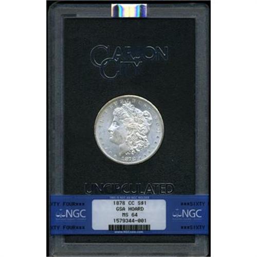 <B>1878-CC $1 MS64 NGC.</B></I> NGC Census: (3674/1068). PCGS Population (5031/1642). Mintage: 2,212,000. Numismedia Wsl. Price for NGC/PCGS coin in MS64: $475. (#7080)<BR><BR><B>Coin Engraver:</B> George T. Morgan<BR><BR><b>Shipping:</b> Coins & Currency (<a target="_blank" href="http://www.heritageauctions.com/common/shipping.php">view shipping information</a>)