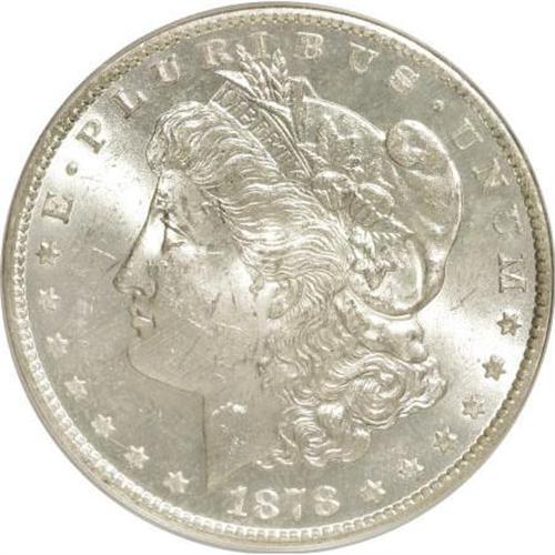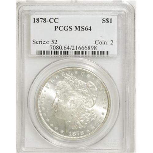 <B>1878-CC $1 MS64 PCGS.</B></I> PCGS Population (4955/1621). NGC Census: (3610/1083). Mintage: 2,212,000. Numismedia Wsl. Price for NGC/PCGS coin in MS64: $480. (#7080)<BR><BR><B>Coin Engraver:</B> George T. Morgan<BR><BR><b>Shipping:</b> Coins & Currency (<a target="_blank" href="http://www.heritageauctions.com/common/shipping.php">view shipping information</a>)