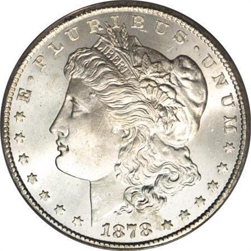 <B>1878-CC $1 MS66 PCGS.</B></I> A stone-white Premium Gem of the initial Carson City Morgan dollar issue. The strike is intricate, although a few faint parallel roller marks (as produced) cross the obverse. The fields and portrait are exceptionally preserved. As of (1/08), PCGS has certified only four pieces finer.<BR><I>From The Oxford Collection.</B></I><BR><BR><B>Coin Engraver:</B> George T. Morgan<BR><BR><b>Shipping:</b> Coins & Currency (<a target="_blank" href="http://www.heritageauctions.com/common/shipping.php">view shipping information</a>)