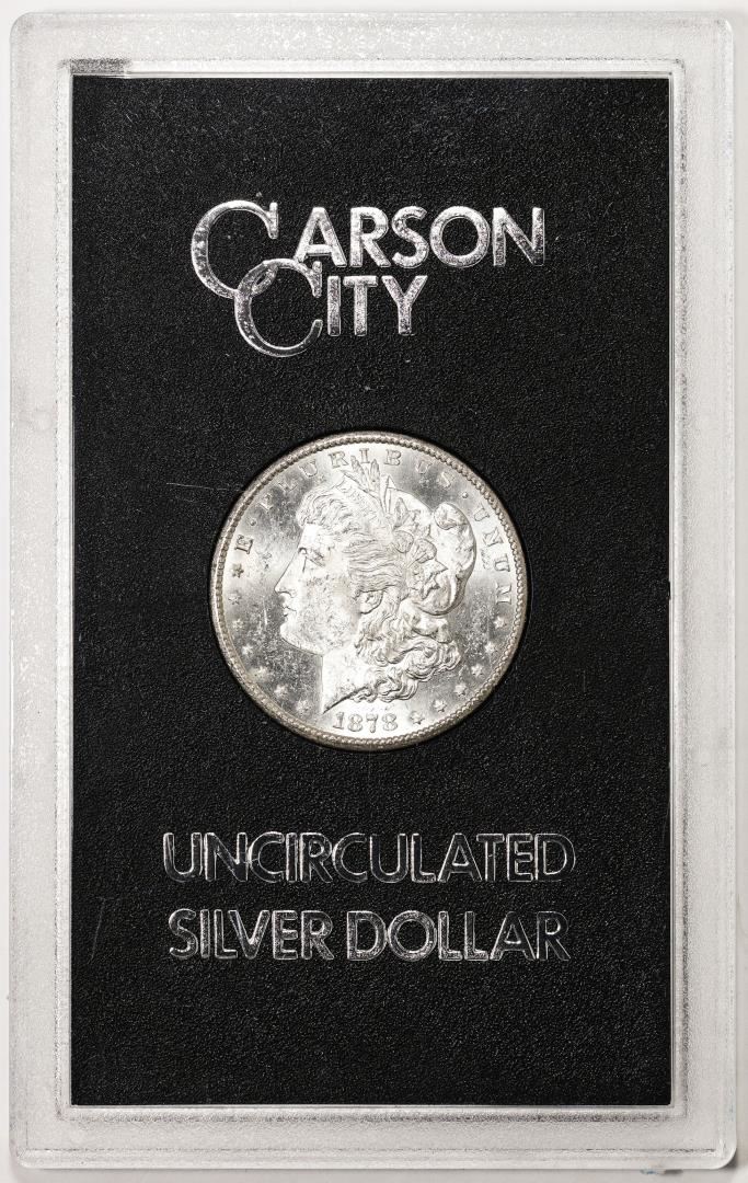 One 1878-CC $1 Morgan Silver Dollar Coin GSA Hoard Uncirculated w/Box & COA.