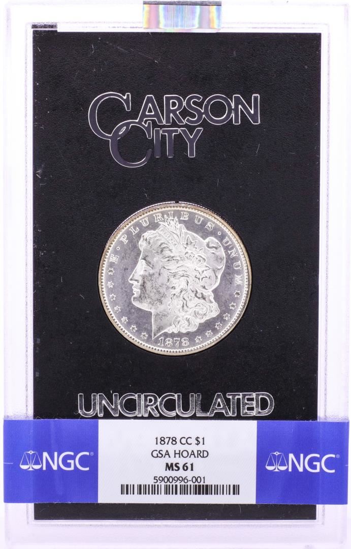 One 1878-CC $1 Morgan Silver Dollar Coin GSA Uncirculated NGC MS61 w/Box & COA. NGC Certified.