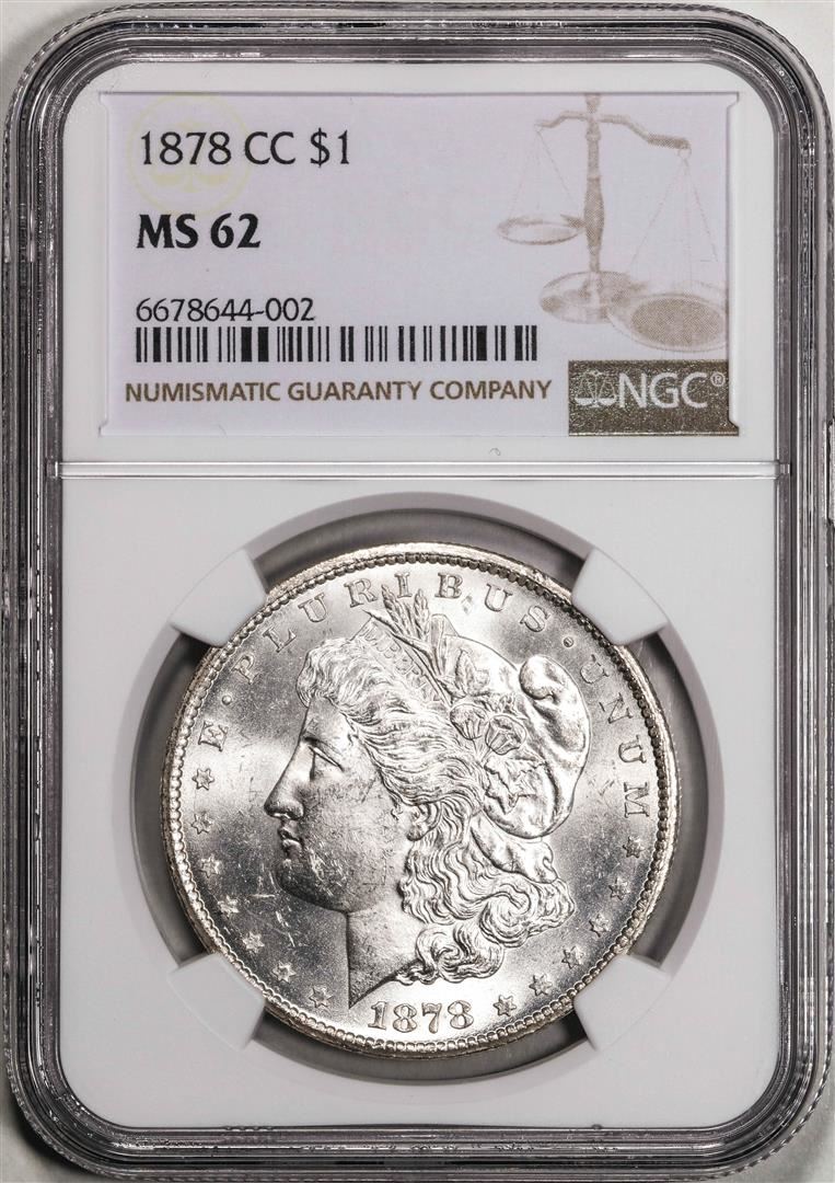 One 1878-CC $1 Morgan Silver Dollar Coin NGC MS62. NGC Certified.