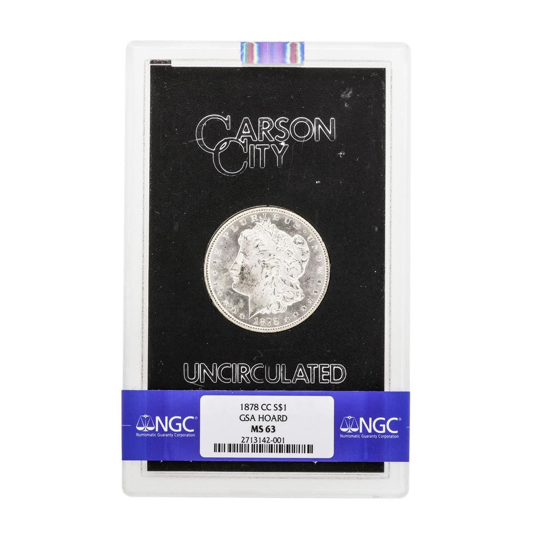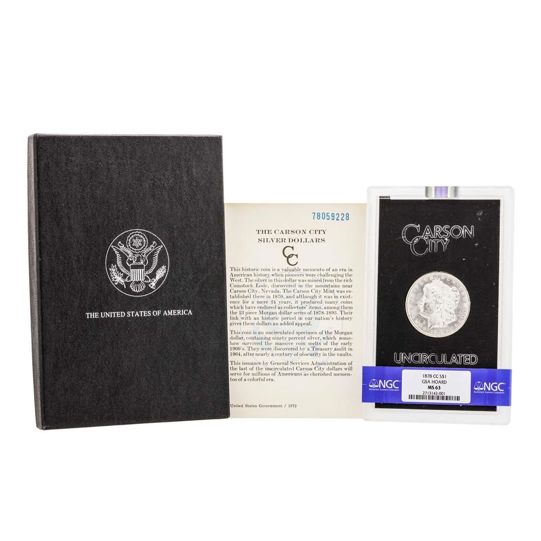 One 1878-CC $1 Morgan Silver Dollar Coin NGC MS63 w/ Box & COA. NGC Certified.