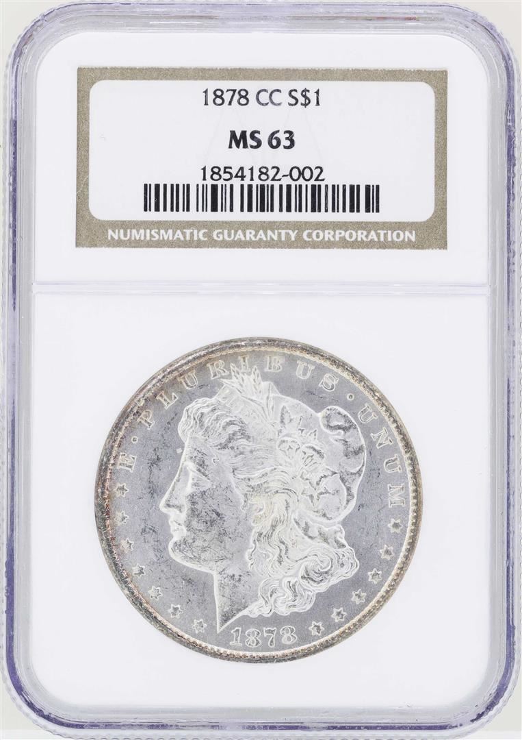 One 1878-CC $1 Morgan Silver Dollar Coin NGC MS63. NGC Certified.