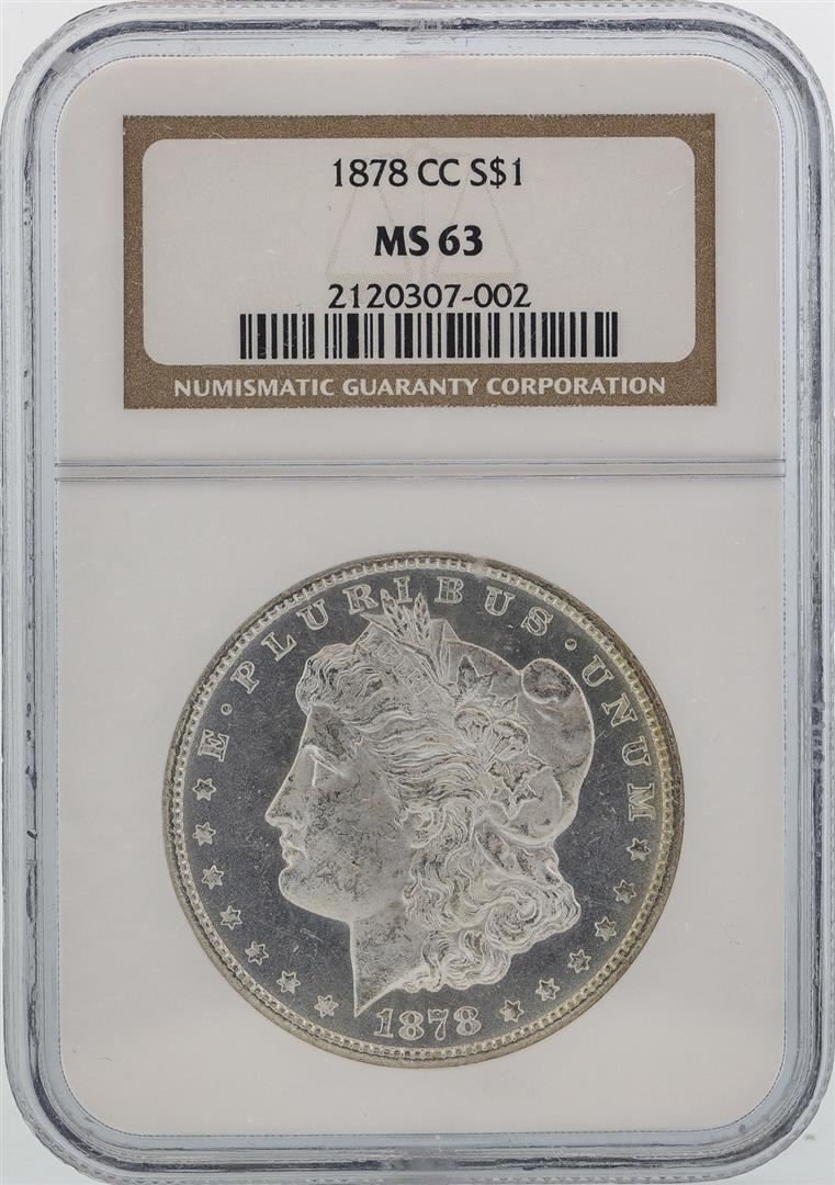 One 1878-CC $1 Morgan Silver Dollar Coin NGC MS63. NGC Certified.