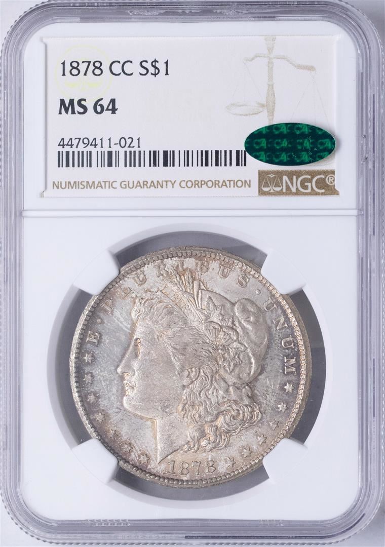 One 1878-CC $1 Morgan Silver Dollar Coin NGC MS64 CAC. NGC Certified.