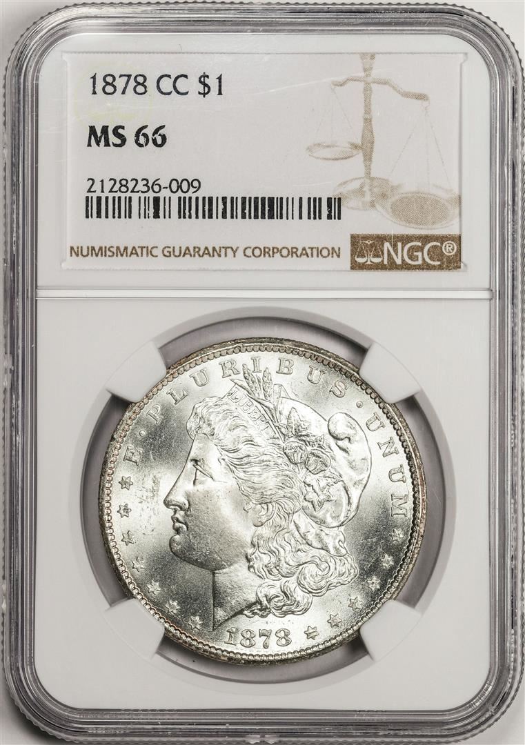 One 1878-CC $1 Morgan Silver Dollar Coin NGC MS66. NGC Certified.