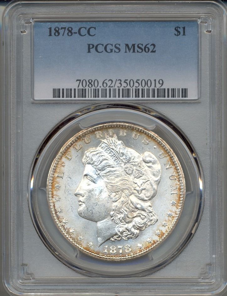 One 1878-CC $1 Morgan Silver Dollar Coin PCGS MS62.