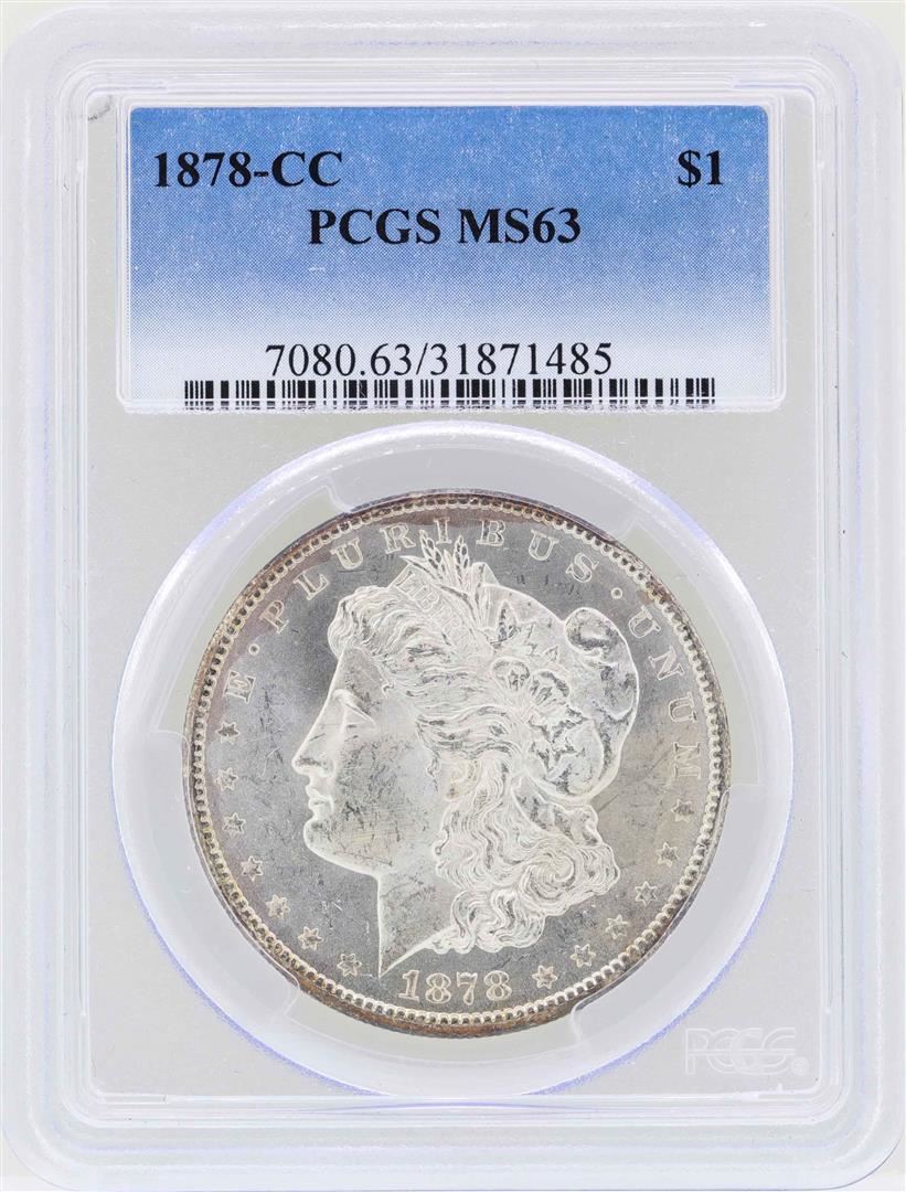 One 1878-CC $1 Morgan Silver Dollar Coin PCGS MS63. PCGS Graded.
