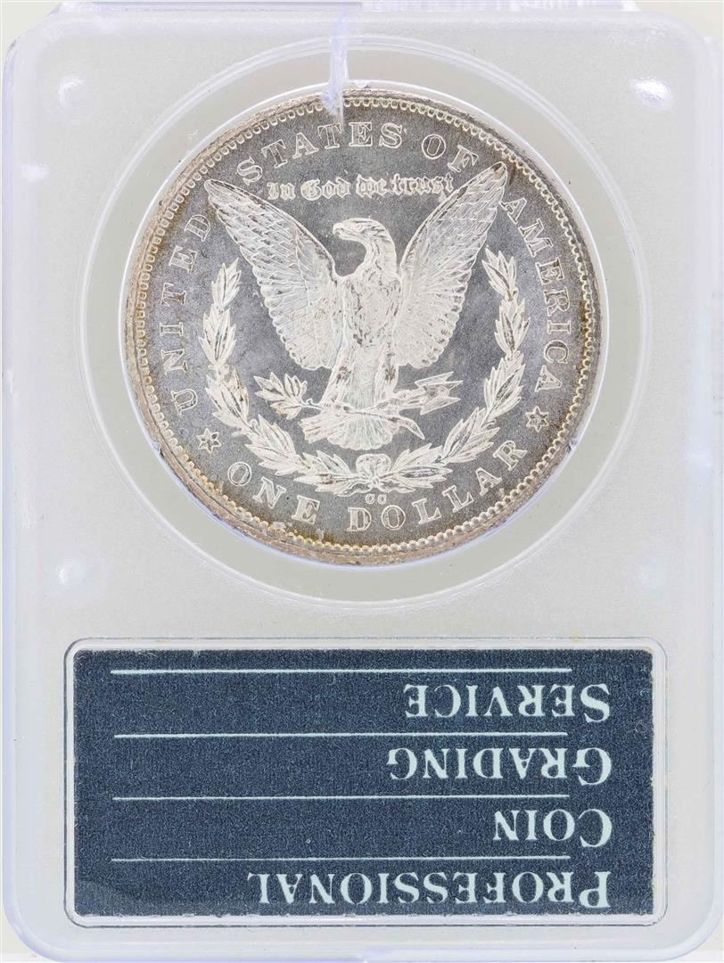 One 1878-CC $1 Morgan Silver Dollar Coin PCGS MS63 in original Green Rattler Case however there is a crack in the plastic on the reverse at the 6 o' clock position. PCGS Graded.