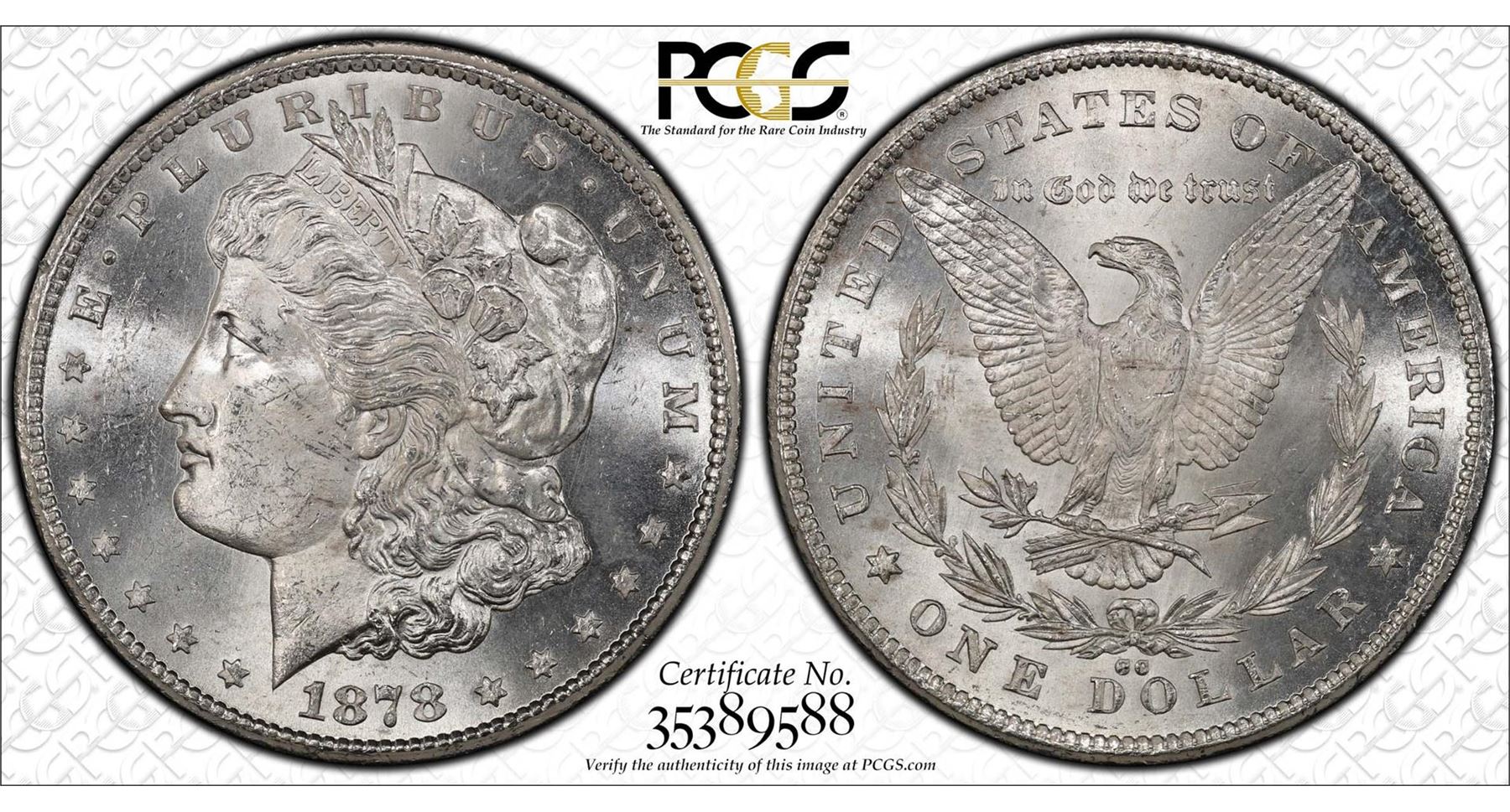 One 1878-CC $1 Morgan Silver Dollar Coin PCGS MS63. PCGS Certified.