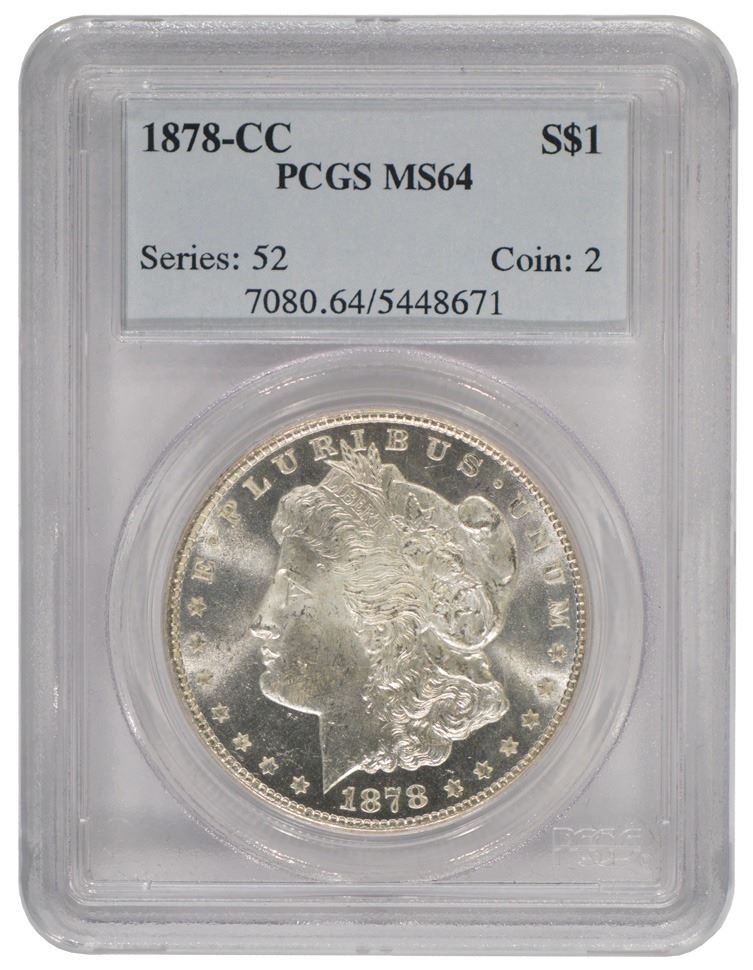 One 1878-CC $1 Morgan Silver Dollar Coin PCGS MS64.