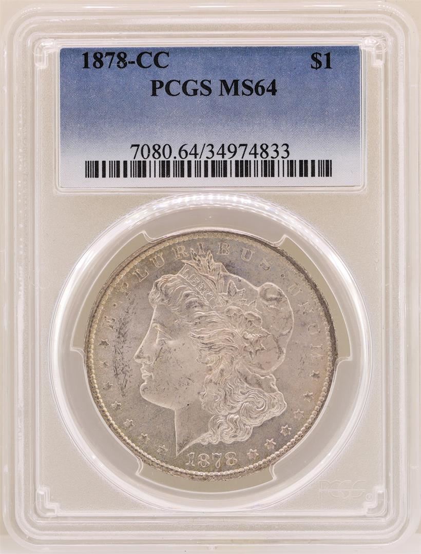 One 1878-CC $1 Morgan Silver Dollar Coin PCGS MS64. PCGS Graded.