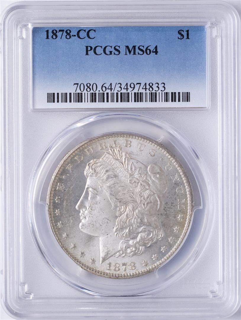 One 1878-CC $1 Morgan Silver Dollar Coin PCGS MS64. PCGS Graded.