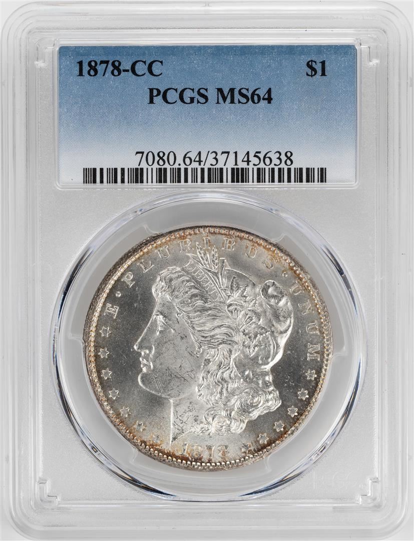 One 1878-CC $1 Morgan Silver Dollar Coin PCGS MS64. PCGS Graded.