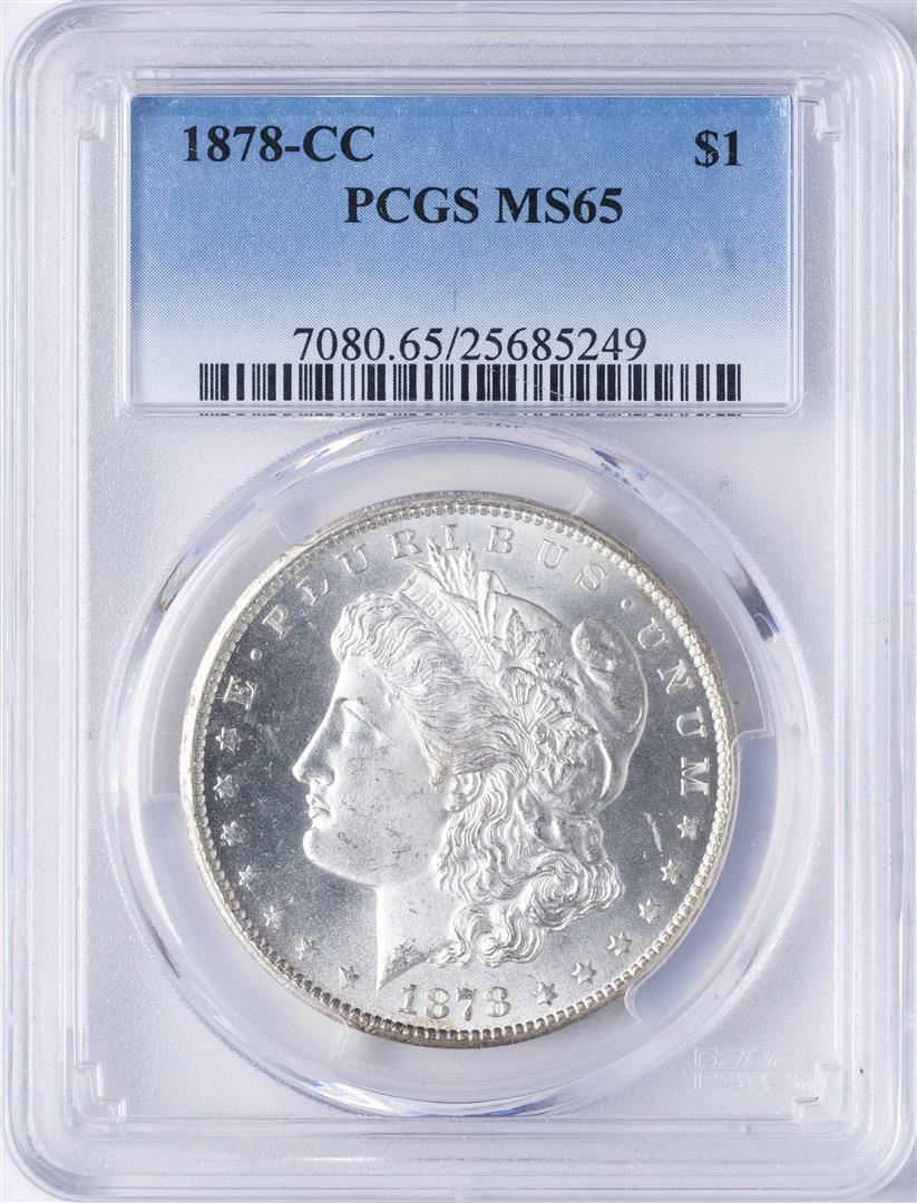 One 1878-CC $1 Morgan Silver Dollar Coin PCGS MS65. PCGS Graded.