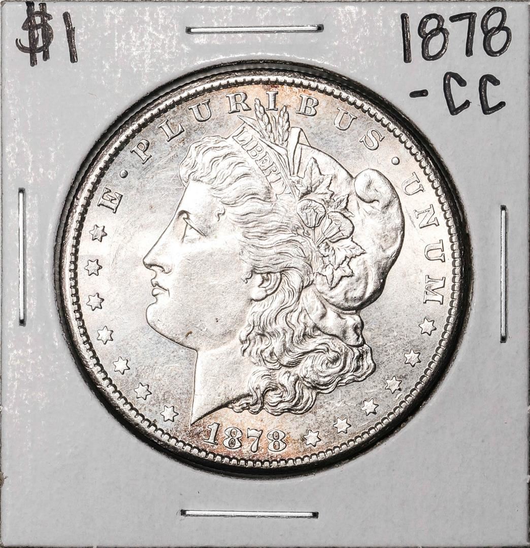 One 1878-CC $1 Morgan Silver Dollar Coin.