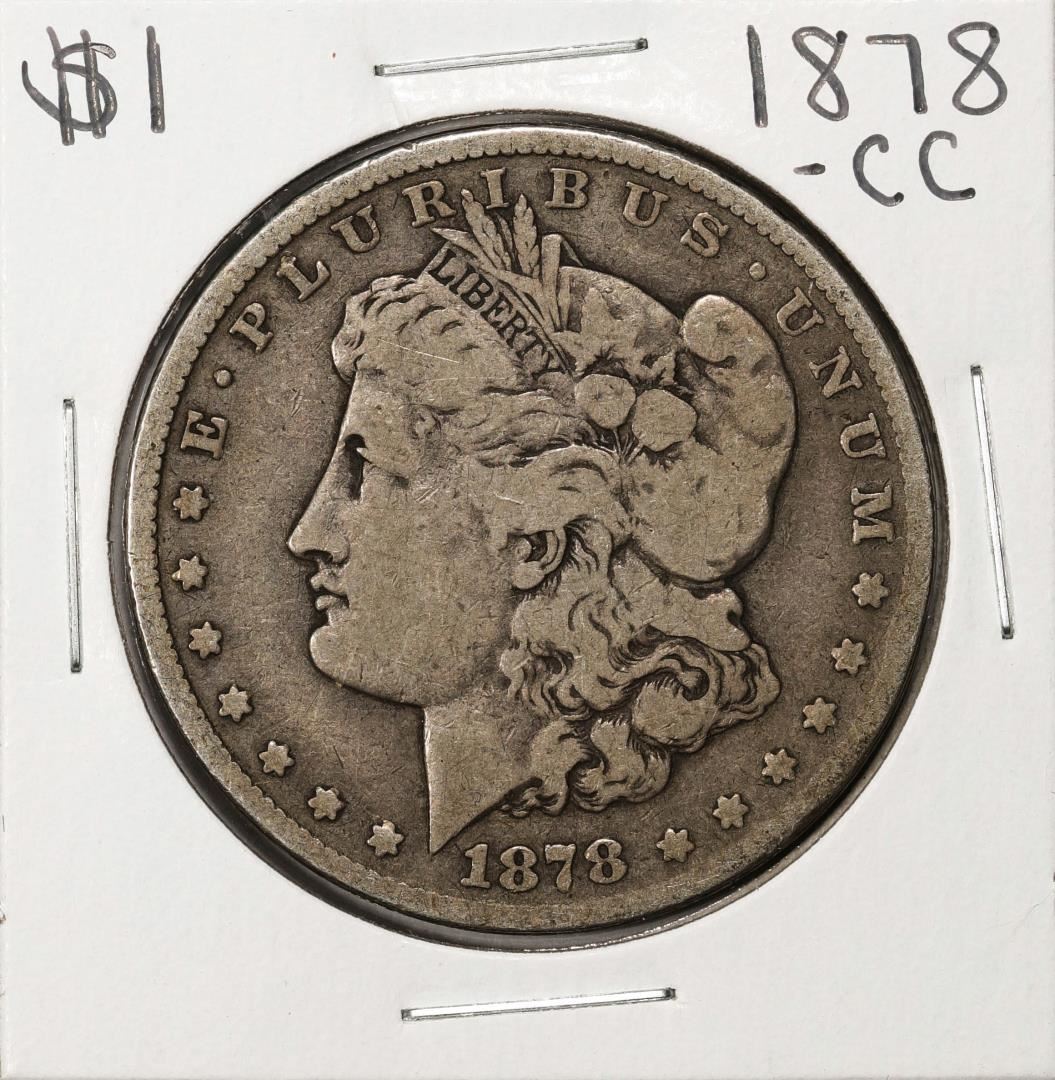 One 1878-CC $1 Morgan Silver Dollar Coin.
