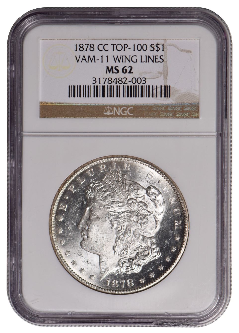 One 1878-CC $1 Morgan Silver Dollar NGC MS62.