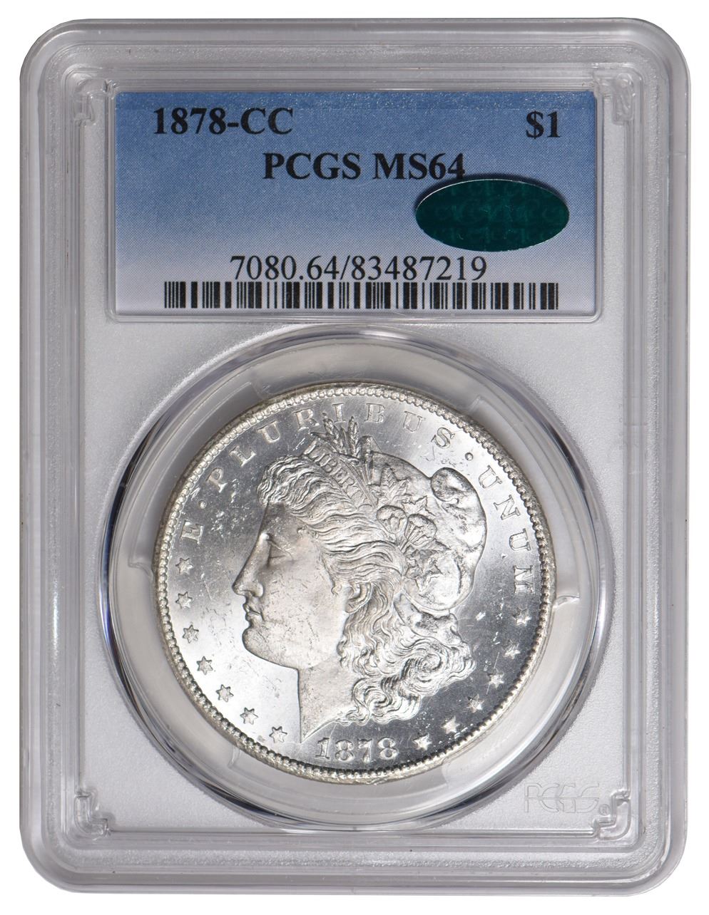 One 1878-CC $1 Morgan Silver Dollar PCGS MS64 CAC.