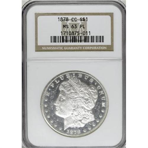<B>1878-CC $1 MS63 Prooflike NGC.</B></I> NGC Census: (366/382). PCGS Population (424/437). Numismedia Wsl. Price for NGC/PCGS coin in MS63: $360. (#7081)<BR><BR><B>Coin Engraver:</B> George T. Morgan<BR><BR><b>Shipping:</b> Coins & Currency (<a target="_blank" href="http://www.heritageauctions.com/common/shipping.php">view shipping information</a>)