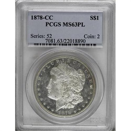 <B>1878-CC $1 MS63 Prooflike PCGS.</B></I> PCGS Population (421/441). NGC Census: (357/375). Numismedia Wsl. Price for NGC/PCGS coin in MS63: $360. (#7081)<BR><BR><B>Coin Engraver:</B> George T. Morgan<BR><BR><b>Shipping:</b> Coins & Currency (<a target="_blank" href="http://www.heritageauctions.com/common/shipping.php">view shipping information</a>)