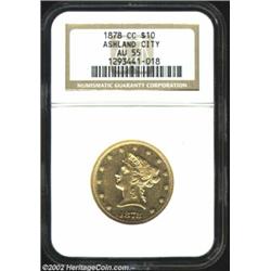 1878-CC $10 AU55 NGC. Winter 1-A, the only known dies. The Carson City Mint produced only 3,244 Libe