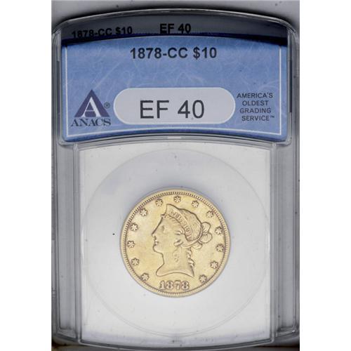 1878-CC $10 XF40 ANACS. Variety 1-A, the only known va 1878-CC[$10] XF40 ANACS.