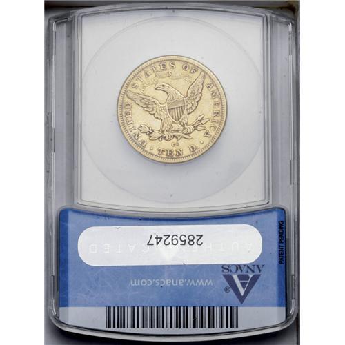 <B>1878-CC<$10> XF40 ANACS.</B></I> Variety 1-A, the only known variety. The 1878-CC is another very scarce Carson City ten that has been consigned from a collection that has been off the market for half a century. Only 3,244 pieces were struck of this issue, and it is reliably estimated that today a mere 45-55 coins are extant in all grades. Most of the survivors are in the VF grade range, and even XF coins, such as this one, are difficult to find. It appears that the collector who set aside this coin (and the other coins in this consignment), was primarily interested in clean coins for the grade. Even this piece, from a date that is known for heavy abrasions, only shows one moderate mark, that being located below the right end of the scroll on the reverse. The surfaces are bright and the devices are evenly worn over the highpoints with darker patina surrounding the design elements.<BR><I>From The Lewis (Tahoe) Collection.</B></I>