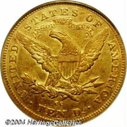 <table><tr><td><table><tr><td>1878-CC $10 XF40 ICG. Winter 1-A, the only known dies. An impressively high grade '78-CC ten-dollar, this piece keeps some of its original mint luster and a little orange color surrounds the devices on each side. A trifle soft on Liberty's curls and the eagle's neck, a bluntness normally seen on this elusive issue. A few surface marks are noted on the principal obverse device, but these are entirely normal for the issue. <BR><BR><B>Important notice:</B> Heritage usually auctions material at the rate of 200-250 lots per hour. On some occasions eBay Live bid software or the Internet may not be able to keep up with the pace of the auction. We recommend placing a realistic absentee bid now as insurance to avoid disappointment. Occasionally the auctioneer may eliminate or reject an eBay Live bid, and the auctioneer may also reopen a lot after the close of the eBay live bidding (usually because we missed an audience bid), and may reject your bid even if it shows you as the winning bidder. By bidding via eBay Live, you agree that Heritage may award the lot to another bidder at its sole discretion under the circumstances described above or any other reasonable circumstances. Since eBay bids are not shown to us until we open the lot on the floor, we treat those bids just like floor bids. In most cases the floor responds before the eBay bid is presented to us, due to Internet lag time, so for consistency we have made it a policy that floor bids are always considered first over tie eBay live bids. Also please note that all Heritage lots purchased through eBay Live carry a 20% Buyer's Premium. Please make sure you read the Terms and Conditions before you bid. <BR><BR><B>IMPORTANT ANNOUNCEMENT ABOUT RESERVES:</B> Heritage now divulges all reserves on its web site 7 days before every auction. If you want to know whether the reserve on this lot has been met, and if not, what the reserve amount is, please visit this lot page on the HeritageCoin.com web site, or email: bid@HeritageGalleries.com </span></font></td></tr></table></td></tr></table>
