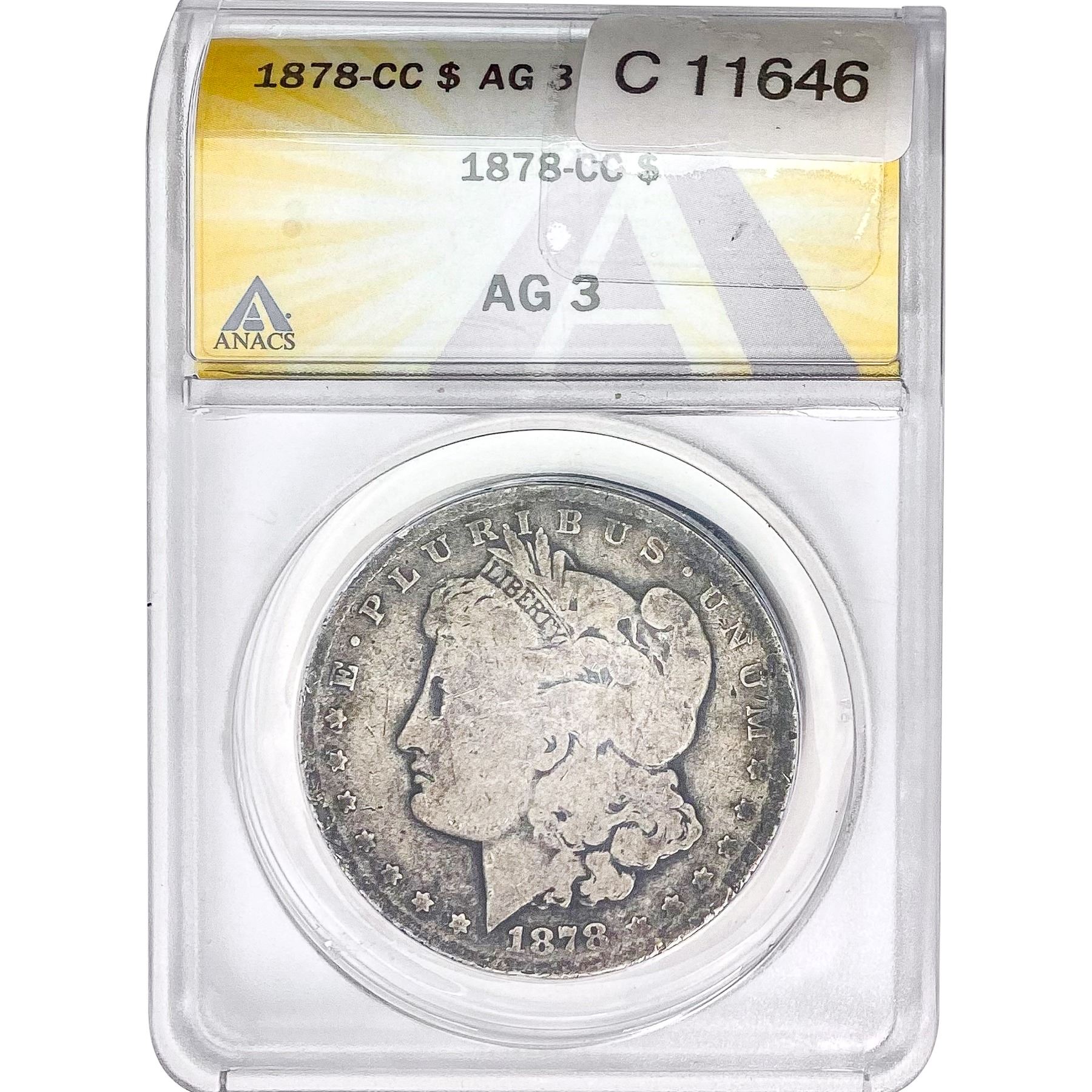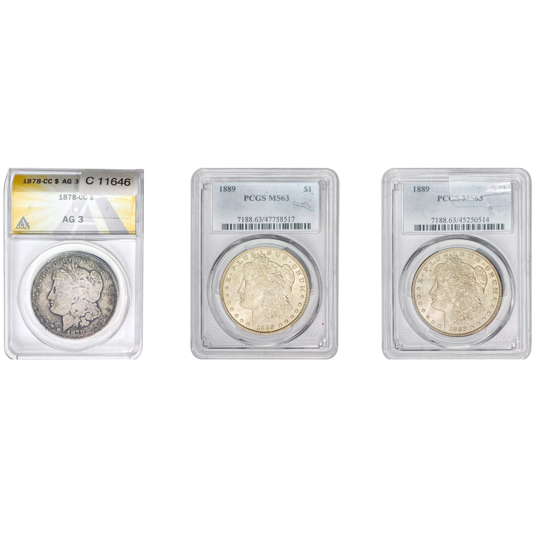 1878-CC / 1889 [3] Morgan Silver Dollar ANACS-AG3/PCGS-63