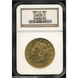 <table><tr><td><TABLE cellSpacing=0 cellPadding=0 width="100%" bgColor=#000000 border=0><TBODY> <TR><TD width="100%"><TABLE cellSpacing=1 cellPadding=3 width="100%" border=0><TBODY><TR><TD width="100%" bgColor=#79735c><FONT face=arial color=#ffffff size=3><B>Description</B> </FONT></TD></TR><TR><TD width="100%" bgColor=#ffffff><FONT face=arial size=2><B>1878-CC $20 AU55 NGC.</B></I> Winter 1-A. Easily recognized by a die scratch at the back of Liberty's neck and a pair of small die lumps to the right of the second T in TWENTY on the reverse. The '78-CC is one of the more elusive Carson City Twenties, struck from a mintage of only 13,180 coins, that ranks fourth in overall scarcity among CC Double Eagles. Much luster survives beneath delicate reddish and olive patina. A few small marks are noted on Liberty's cheek and neck. </FONT></TD></TR></TBODY></TABLE></TD></TR></TBODY></TABLE><BR><A name=PricesRealized></A><TABLE cellSpacing=0 cellPadding=0 width="100%" bgColor=#000000 border=0><TBODY><TR><TD width="100%"><TABLE cellSpacing=1 cellPadding=3 width="100%" border=0><TBODY><TR><TD width="100%" bgColor=#79735c><A name=PR><FONT face=arial color=#ffffff size=3><B>Previous Prices from Heritage Auctions</B> </FONT></A></TD></TR><TR><TD bgColor=#f6f6ed><TABLE cellSpacing=0 cellPadding=0 width="100%" border=1><TBODY><TR><TD align=middle width="33%"><B>Date</B></TD><TD align=middle width="33%"><B>Service</B></TD><TD align=middle width="33%"><B>Price</B></TD></TR><TR bgColor=whitesmoke><TD width="33%"><B>01/11/2003</B></TD><TD width="33%">NGC</TD><TD width="33%">$7,130.00</TD></TR><TR bgColor=whitesmoke><TD width="33%"><B>08/07/1998</B></TD><TD width="33%">PCGS</TD><TD width="33%">$5,405.00</TD></TR><TR bgColor=whitesmoke><TD width="33%"><B>08/19/1995</B></TD><TD width="33%">PCGS</TD><TD width="33%">$3,080.00</TD></TR><TR bgColor=whitesmoke><TD width="33%"><B>11/01/1994</B></TD><TD width="33%">PCGS</TD><TD width="33%">$4,620.00</TD></TR><TR bgColor=whitesmoke><TD width="33%"><B>01/01/1996</B></TD><TD width="33%">NGC</TD><TD width="33%">$4,400.00</TD></TR></TBODY></TABLE></TD></TR><TR><TD bgColor=#ffffff><FONT face=arial size=1 ?>PLEASE NOTE: All prices realized reflect the final hammer price PLUS the buyer's premium in auctions that charge a buyer's premium. Each item has a notation at the top of the listing indicating whether that lot included a buyer's premium. Example: A item that sells with a final hammer price of $100 and a 20% buyer's premium will display with a price realized of $120. All information listed is intended to be as accurate as possible, but errors are possible. Please use this guide carefully and inform us of any inaccuracies. </FONT></TD></TR></TBODY></TABLE></TD></TR></TBODY></TABLE><BR><TABLE cellSpacing=0 cellPadding=0 width="100%" bgColor=#000000 border=0><TBODY><TR><TD width="100%"><TABLE cellSpacing=1 cellPadding=3 width="100%" border=0><TBODY><TR><TD width="100%" bgColor=#79735c colSpan=6><FONT face=arial color=#ffffff size=3><B>Price Guide*</B> </FONT></TD></TR><TR bgColor=#f6f6ed><TD align=middle><B>Grade</B> </TD><TD align=middle><B>Coin World<BR>(Trends)</B> </TD><TD align=middle><B>Numismedia<BR>Retail</B> </TD><TD align=middle><B>Numismedia<BR>Wholesale</B> </TD><TD align=middle><B>Coin<BR>Universe</B> </TD><TD align=middle><B>Heritage<BR>Value Index</B> </TD></TR><TR bgColor=#ffffff><TD align=middle>53</TD><TD align=right>---</TD><TD align=right>---</TD><TD align=right>$3,775.00</TD><TD align=right>---</TD><TD align=right>$4,772.04</TD></TR><TR style="FONT-WEIGHT: bold" bgColor=#cccfdd><TD align=middle>55</TD><TD align=right>$9,250.00</TD><TD align=right>---</TD><TD align=right>$5,125.00</TD><TD align=right>$4,150.00</TD><TD align=right>$6,084.38</TD></TR><TR bgColor=#ffffff><TD align=middle>58</TD><TD align=right>$11,500.00</TD><TD align=right>---</TD><TD align=right>$8,550.00</TD><TD align=right>---</TD><TD align=right>$11,166.50</TD></TR><TR bgColor=#ffffff><TD colSpan=6><FONT size=1>*All information listed is intended to be as accurate as possible, but errors are possible. No item may be returned or refused based on this information which is provided as a service to our customers. You should contact each pricing source directly to determine the accuracy of this information. </FONT></TD></TR></TBODY></TABLE></TD></TR></TBODY></TABLE><BR><TABLE cellSpacing=0 cellPadding=0 width="100%" bgColor=#000000 border=0><TBODY><TR><TD width="100%"><TABLE cellSpacing=1 cellPadding=3 width="100%" border=0><TBODY><TR><TD width="100%" bgColor=#79735c><FONT face=arial color=#ffffff size=3><B>Population Guide</B> </FONT></TD></TR><TR bgColor=#ffffff><TD align=middle><!-- Begin Output of Population Grid--><TABLE cellSpacing=0 cellPadding=0 width="100%" border=0><TBODY><TR><TD vAlign=center><TABLE cellSpacing=0 width="100%" border=1 cellsadding="3"><TBODY><TR><TD vAlign=center><TABLE cellSpacing=0 cellPadding=3 width="100%" border=1><TBODY><TR><TD vAlign=center align=middle bgColor=#f0f1e8 colSpan=2 <CENTER><FONT face=Arial size=2><B>PCGS Pop </B></FONT><CENTER></CENTER></TD><TD vAlign=center align=middle bgColor=#f0f1e8 colSpan=2><CENTER><FONT face=Arial size=2><B>NGC Pop</B></CENTER></FONT></TD></TR><TR><TD vAlign=center><FONT face=Arial size=2>(55)</FONT> </TD><TD vAlign=center align=right><FONT face=Arial size=2>21</FONT> </TD><TD vAlign=center><FONT face=Arial size=2>(55)</FONT> </TD><TD vAlign=center align=right><FONT face=Arial size=2>19</FONT> </TD></TR><TR><TD vAlign=center><FONT face=Arial size=2>(>55)</FONT> </TD><TD vAlign=center align=right><FONT face=Arial size=2>12</FONT> </TD><TD vAlign=center><FONT face=Arial size=2>(>55)</FONT> </TD><TD vAlign=center align=right><FONT face=Arial size=2>59</FONT> </TD></TR></TBODY></TABLE></TD></TR></TBODY></TABLE></TD></TR></TBODY></TABLE><!-- End Output of Population Grid--></TD></TR></TBODY></TABLE></TD></TR></TBODY></TABLE><BR><TABLE cellSpacing=0 cellPadding=0 width="100%" bgColor=#000000 border=0><TBODY><TR> Important noti