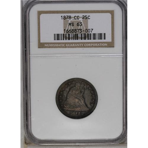 1878-CC 25C MS63 NGC. Deep pumpkin-orange, navy-blue, 1878-CC