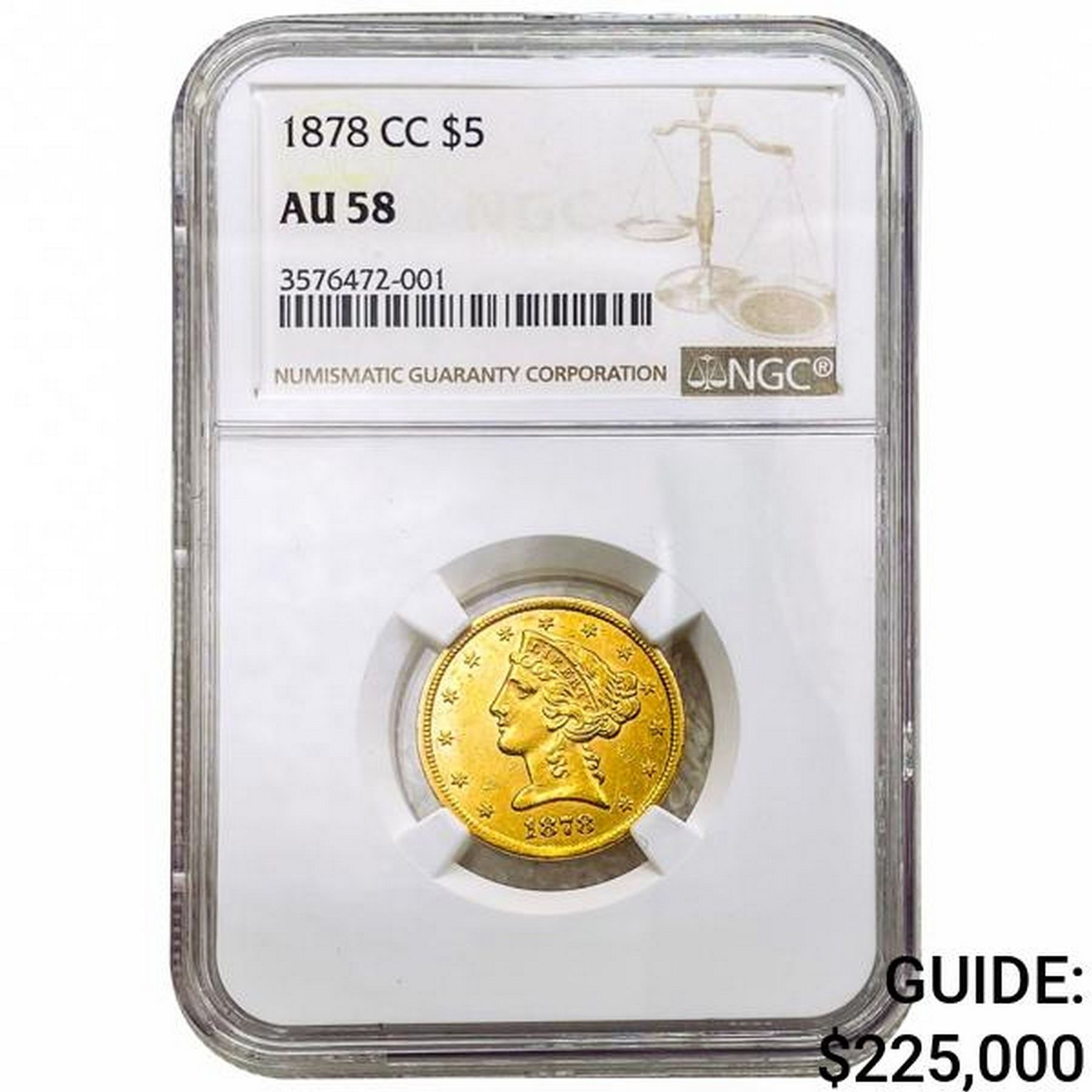 1878-CC $5 LH Half Eagle - Gold - NGC AU58