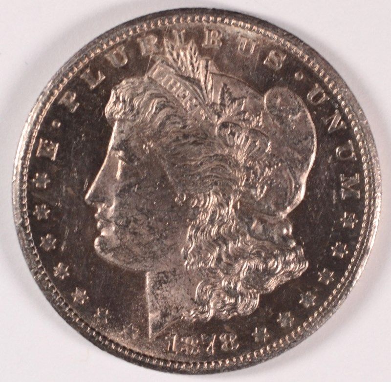 1878-CC MORGAN SILVER DOLLAR, MS-64 PL PRETTY COLORS!