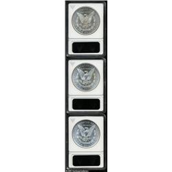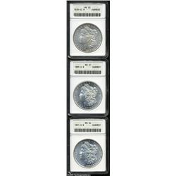 <B>1878-CC<img border='0' src='http://www.heritagecoins.com/images/star.gif' width=10 height=10>$1 MS62 ANACS,</B></I> fully struck and very lightly toned; <B>1885-S MS61 ANACS,</B></I> brilliant and sharply struck with a semi-reflective obverse; and an <B>1891-S MS64 ANACS,</B></I> intricately detailed and brilliant throughout. 3 Coins Lot:9896