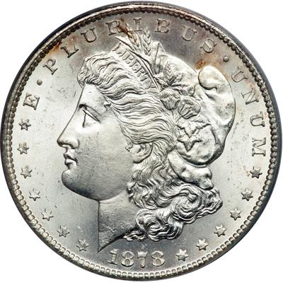 1878-CC Morgan Dollar. PCGS graded MS-65. Well struck and frosty. Another outstanding Gem of the first year of issue. It is difficult for us to grow used to seeing so many outstanding MS65 Morgan dollars, yet their popularity increases by the day -- and for obvious reasons (PCGS # 7080).